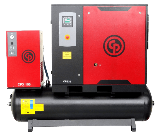 Chicago Pneumatic rotary screw air compressors combine proven design with superior performance. We offer screw compressors ranging in size from 3.5 – 400 HP (2.6-298 kW), as well as both fixed speed and variable speed options. Our smaller models up to 30 HP (22 kW) are offered in both base mounted and tank mounted options, and are also offered with and without an integrated dryer.